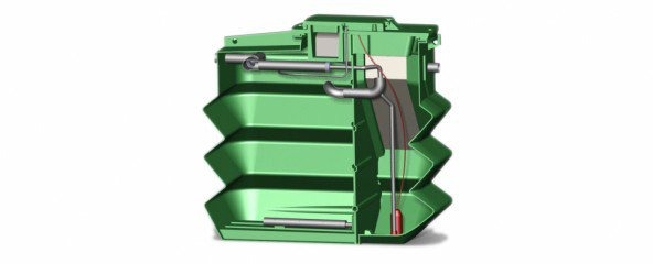 À contrario, le principe de fonctionnement d'une fosse septique repose principalement sur la décantation, permettant uniquement de séparer les matières en suspension des liquides. Préalablement, l'utilisation d'un bac à graisse est souvent nécessaire pour retenir les diverses graisses de la maison. En sortie de fosse, un système d'épandage dans le sol joue ensuite le rôle de filtration/épuration. C'est le sol qui se charge donc de l'épuration des eaux usées.